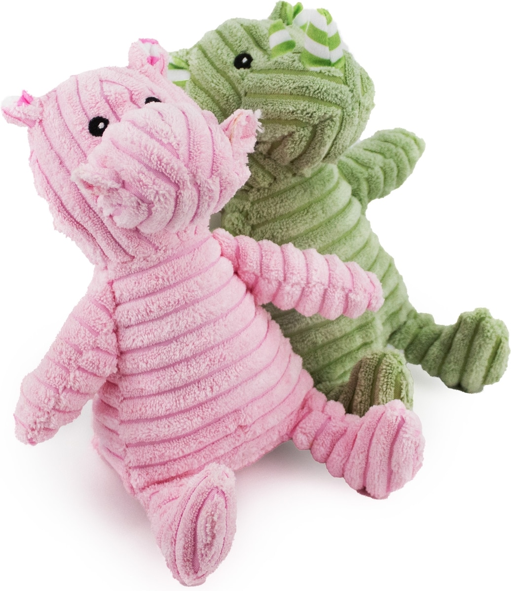 Giftable World Corduroy Jungle Hippo & Rhino Plush Dog Toys, Multi, 7-in, 2 count
