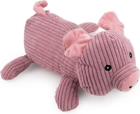 Giftable World Corduroy Lying Pig Plush Dog Toy, Pink, 12-in