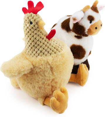 Giftable World Rudy Rooster & Carter Cow Plush Dog Toys, Multi, 8-in, 2 count