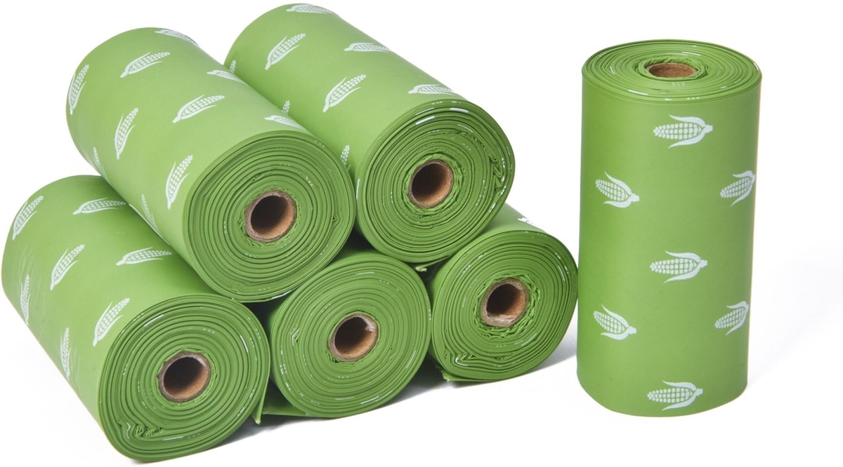 - Sustainable, compostable waste bags are made from cornstarch, so they’re at-home and industrially compostable.