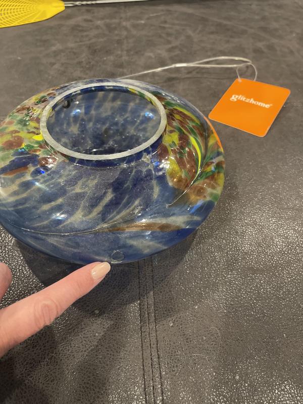 Glitzhome Glass Round Hanging Mosaic Bird Feeder, Multicolor