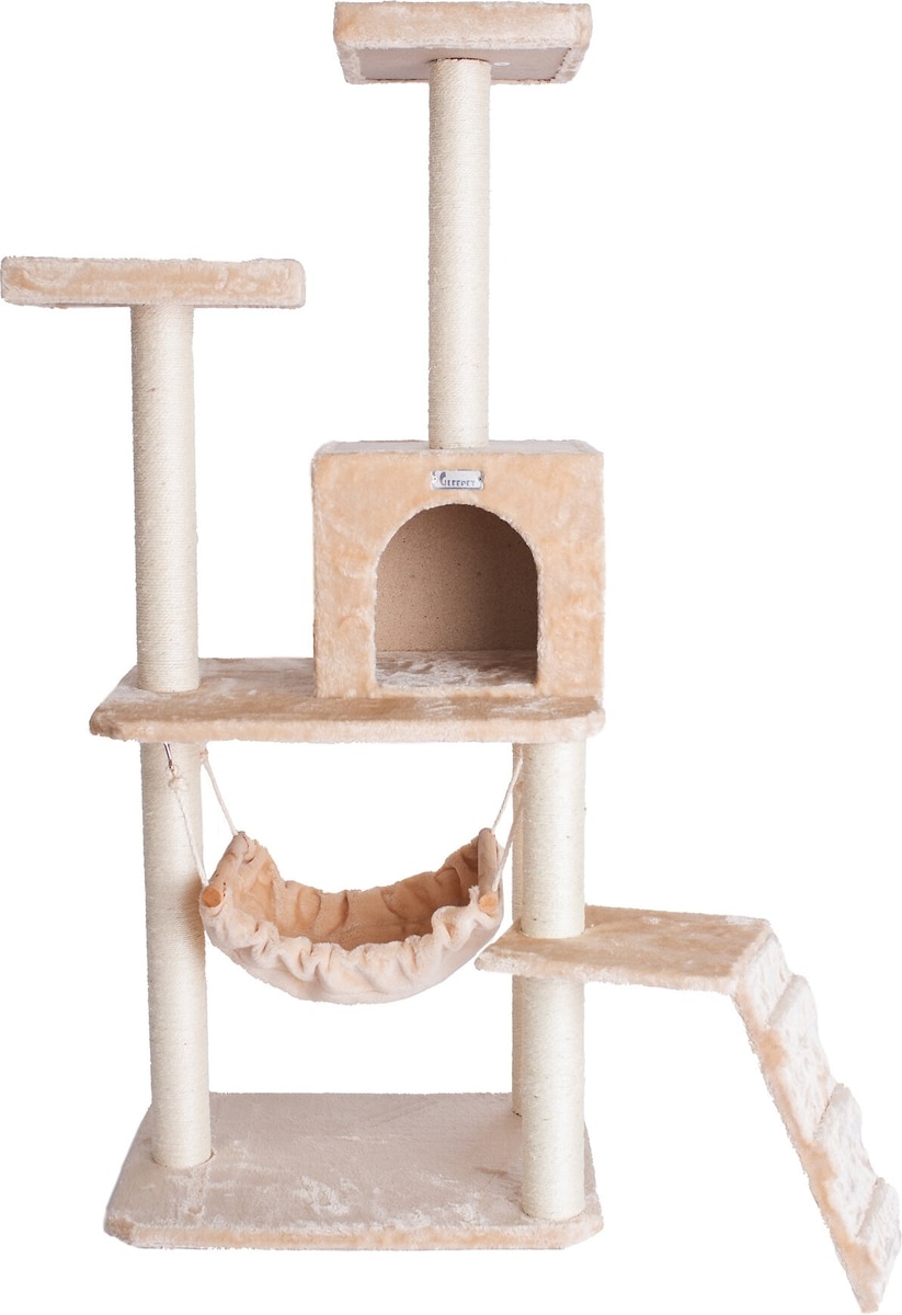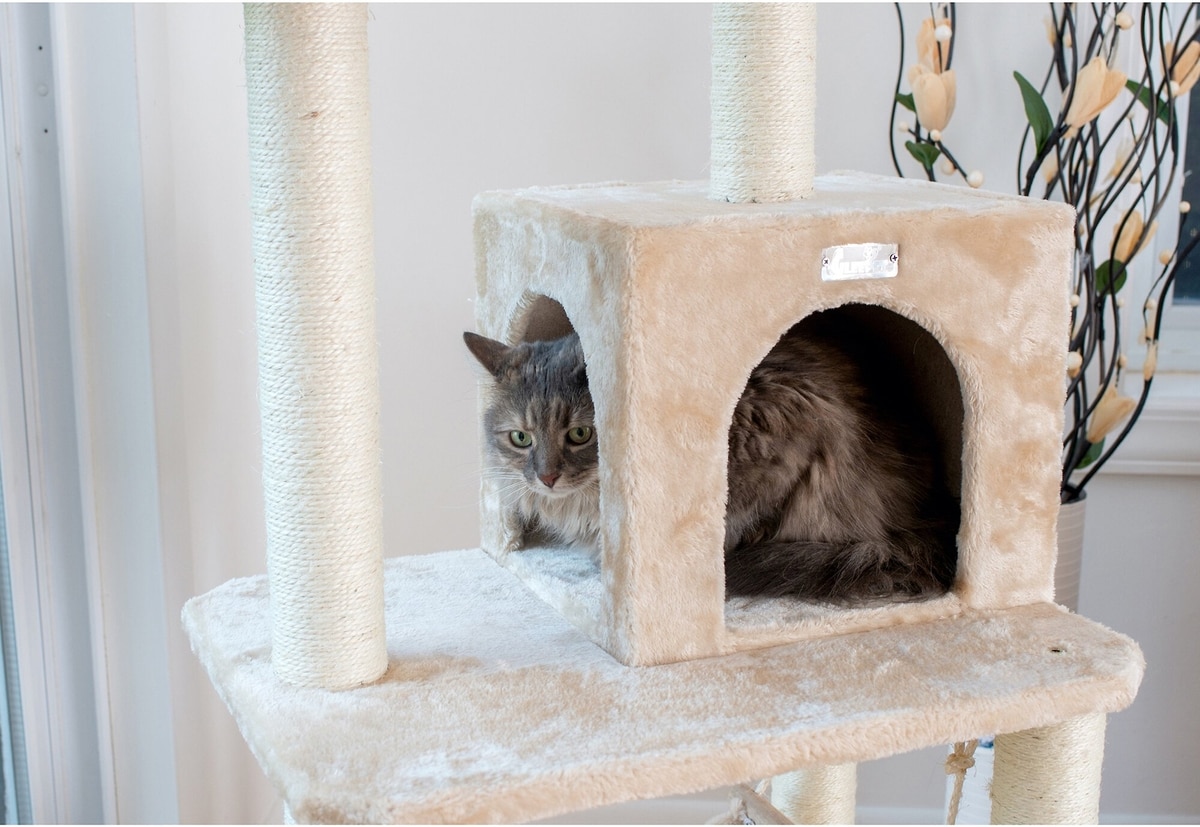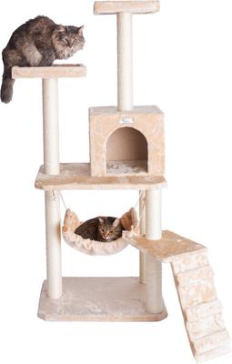 GleePet Faux Fur Covered, Real Wood Cat Tree & Condo, Beige, 57-in
