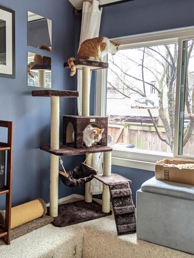 Because cats have a need to climb, a quality cat tree provides healthy exercise. If you have multiple cats, the tree becomes a place for them to play.