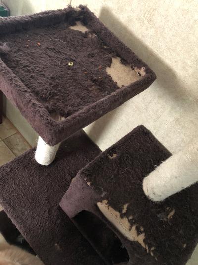 The bottom platform broke completely off and the fabric is literally destroyed just from my cat climbing onto it. It seems so cheaply made. Very disappointed in