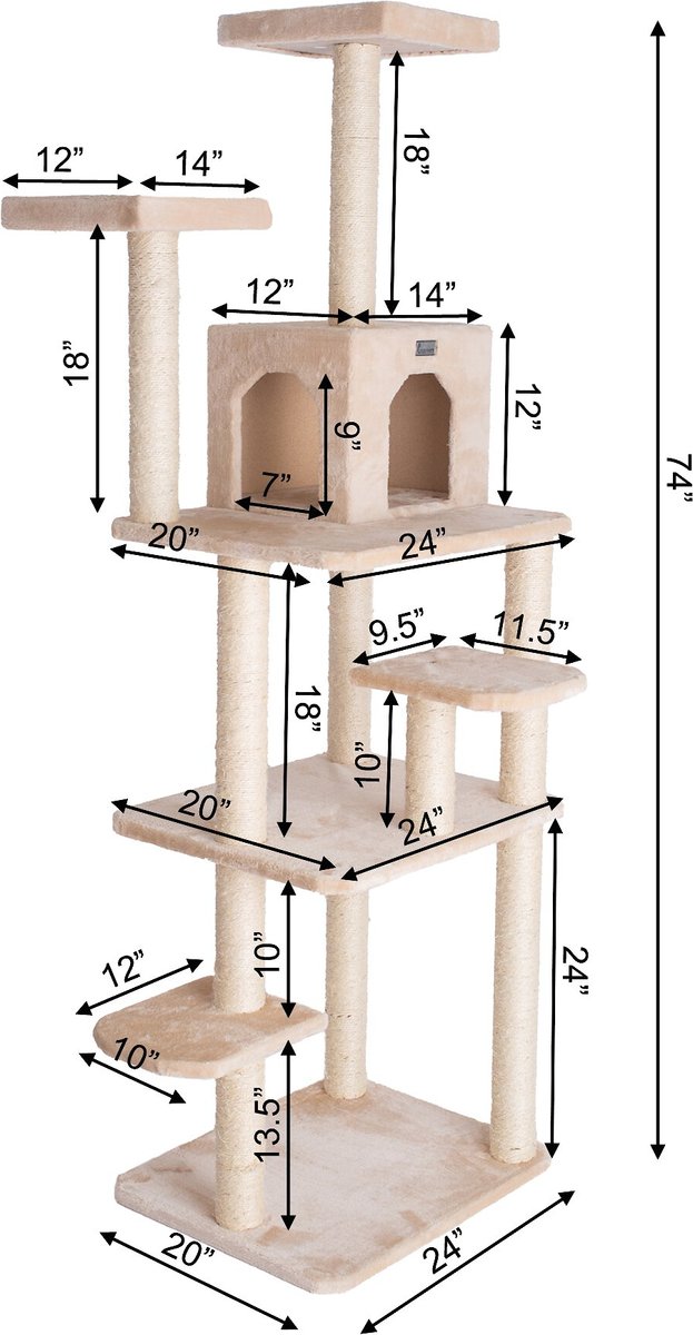 GleePet 74-in Faux Fur Cat Tree & Condo, Beige