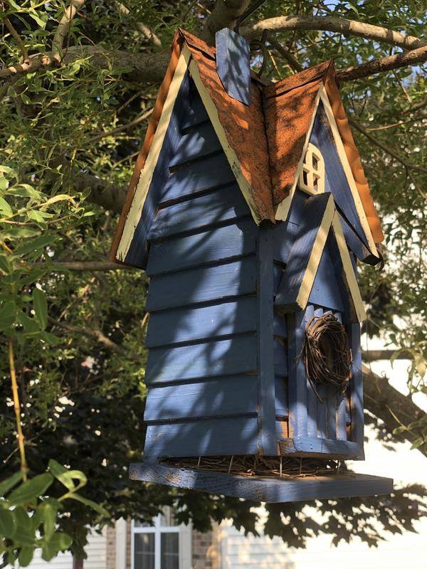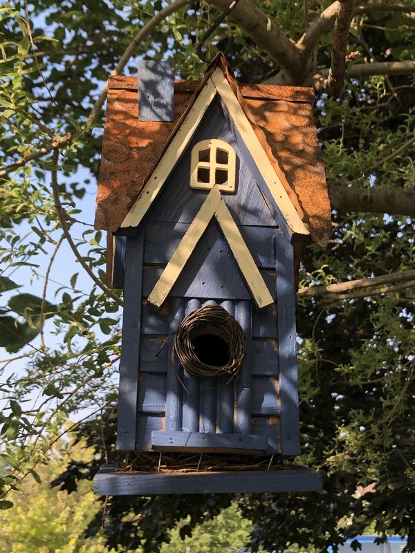 Glitzhome Distressed Solid Wood Cottage Birdhouse, Yellow