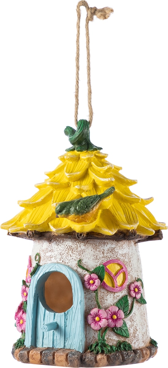 Glitzhome Resin Outdoor Garden Bird House, Yellow