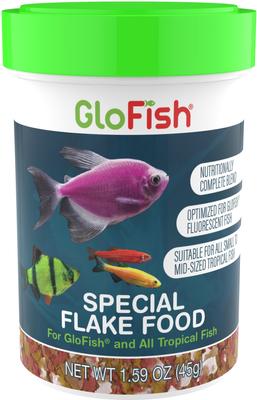 While specially formulated for GloFish, this flake food is also a healthy, nutritionally complete food for the tropical community fish.