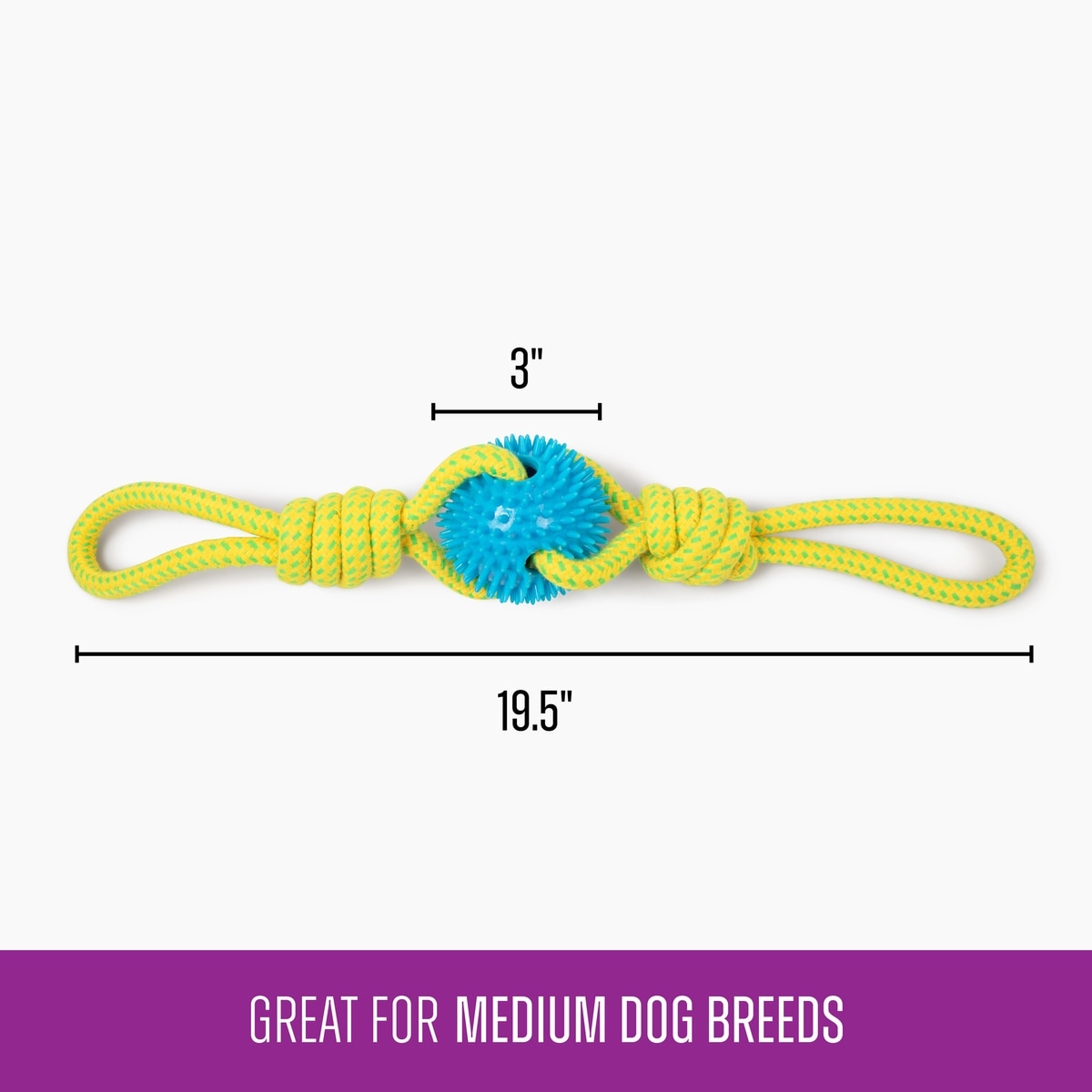 Gnawsome Ball & Rope Tug Dog Toy, Blue & Yellow, Medium