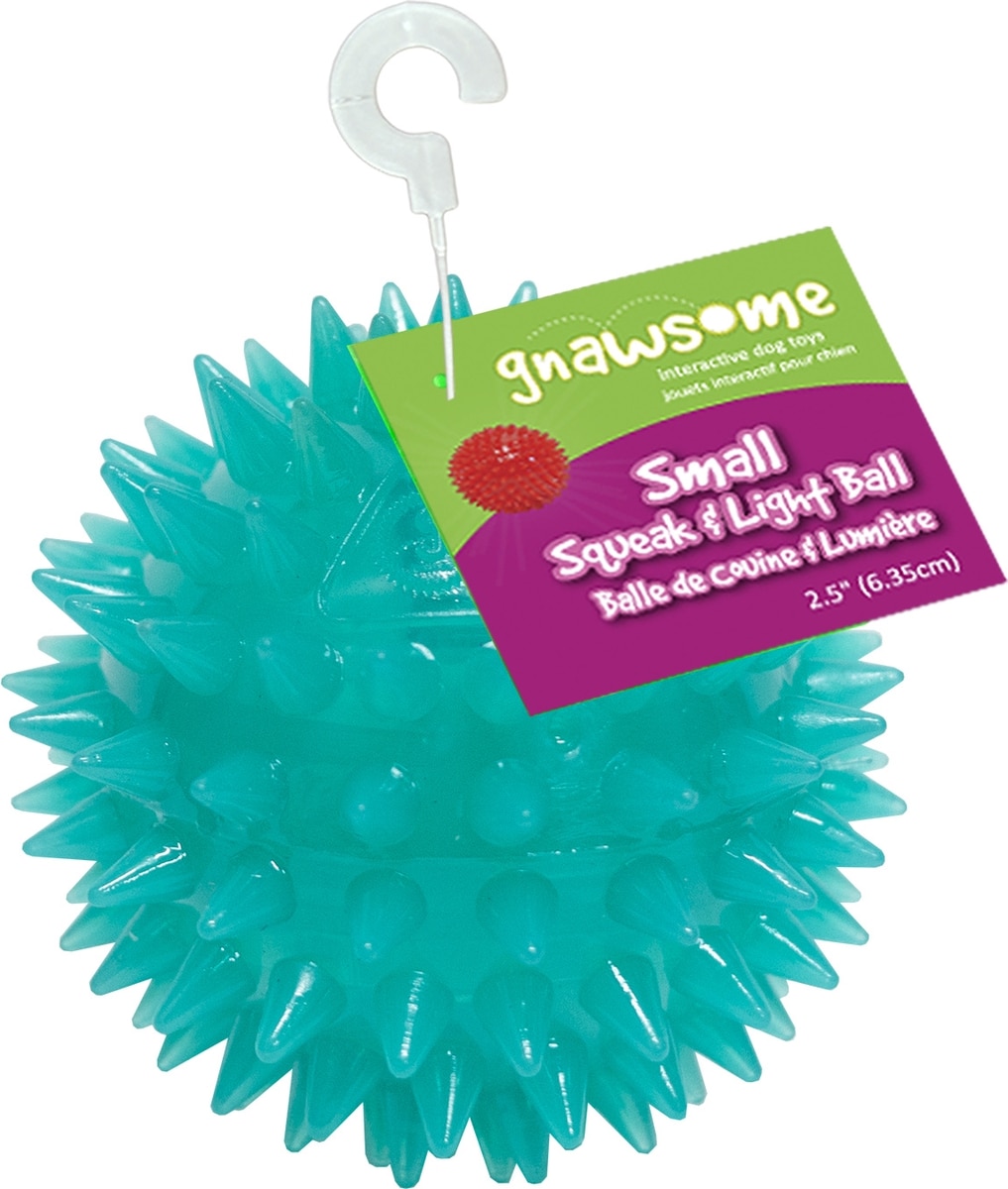 - DealGnawsome Glow-in-the-Dark Spiky Squeaky Dog Ball Toy, Small: 2.5-in$4.12 Chewy PricePromo, Spend $100, Get $30 eGift Card with code NEWYEAR