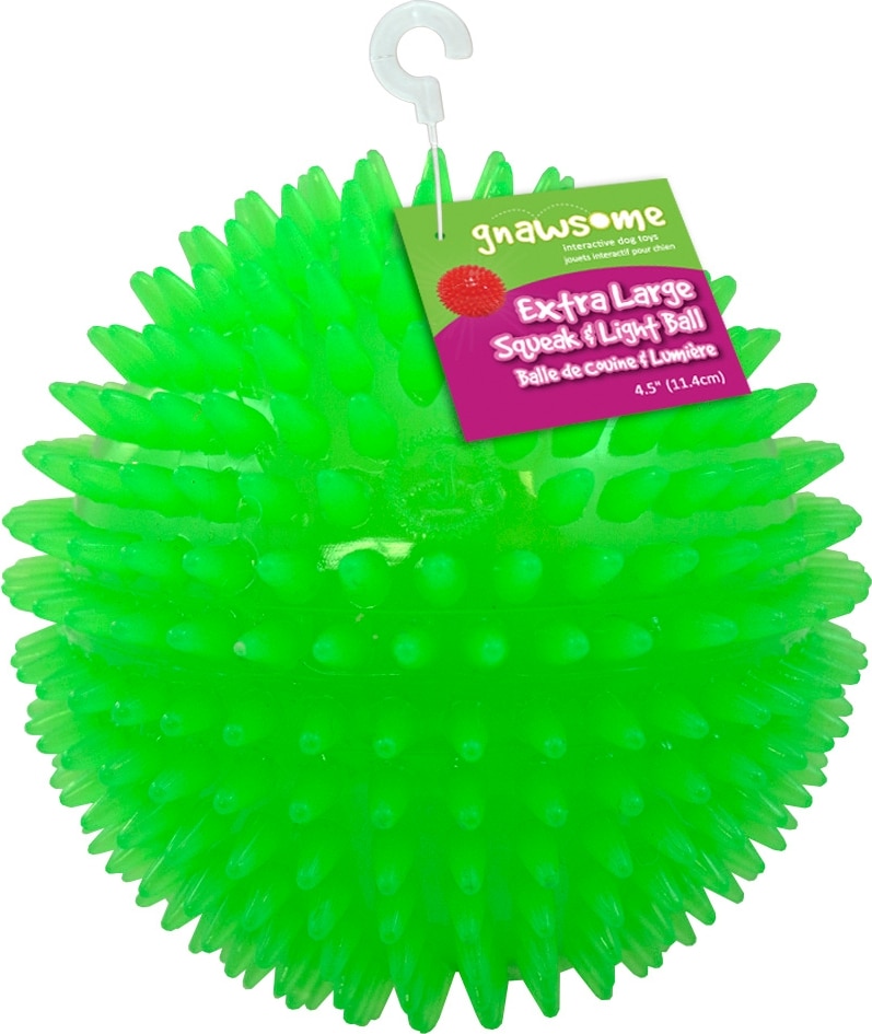 - DealGnawsome Glow-in-the-Dark Spiky Squeaky Dog Ball Toy, Large: 4.5-in$6.87 Chewy PricePromo, Buy 3, Get 4th Free- Mix & Match