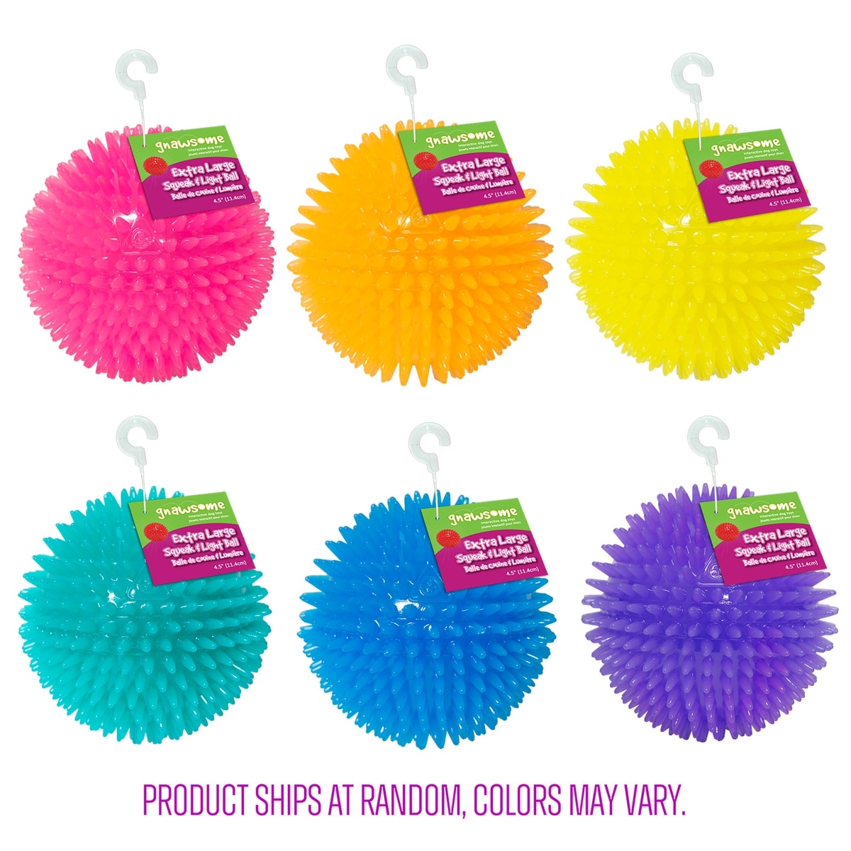 Gnawsome Squeak & Light LED Ball Dog Toy, Color Varies, X-Large