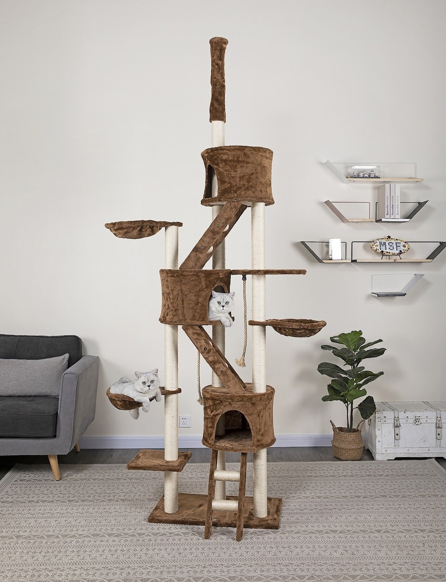 Go Pet Club 106-in Floor-to-Ceiling Faux Fur Cat Tree & Condo, Brown