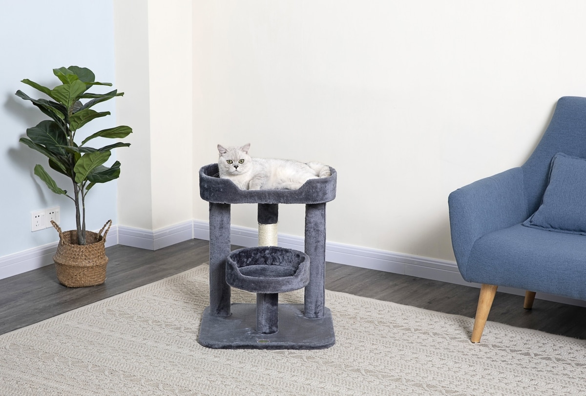 I’ve bought others with multiple flat platforms and cubbys to hide in, but they only liked the top platform and the scratch post. Both cats like both platforms with