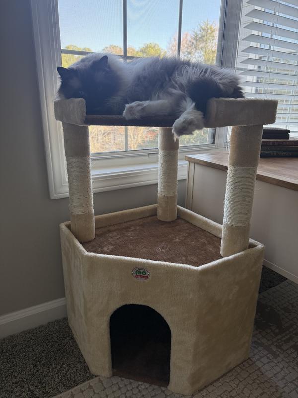 Go Pet Club 32-in Large Perch Cat Tree Condo, Beige/Brown