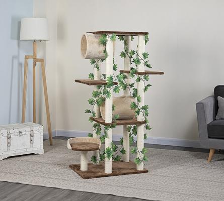- The peaceful oasis is full of sisal rope-wrapped posts, encouraging your cat to scratch the tree and not furniture and floors.