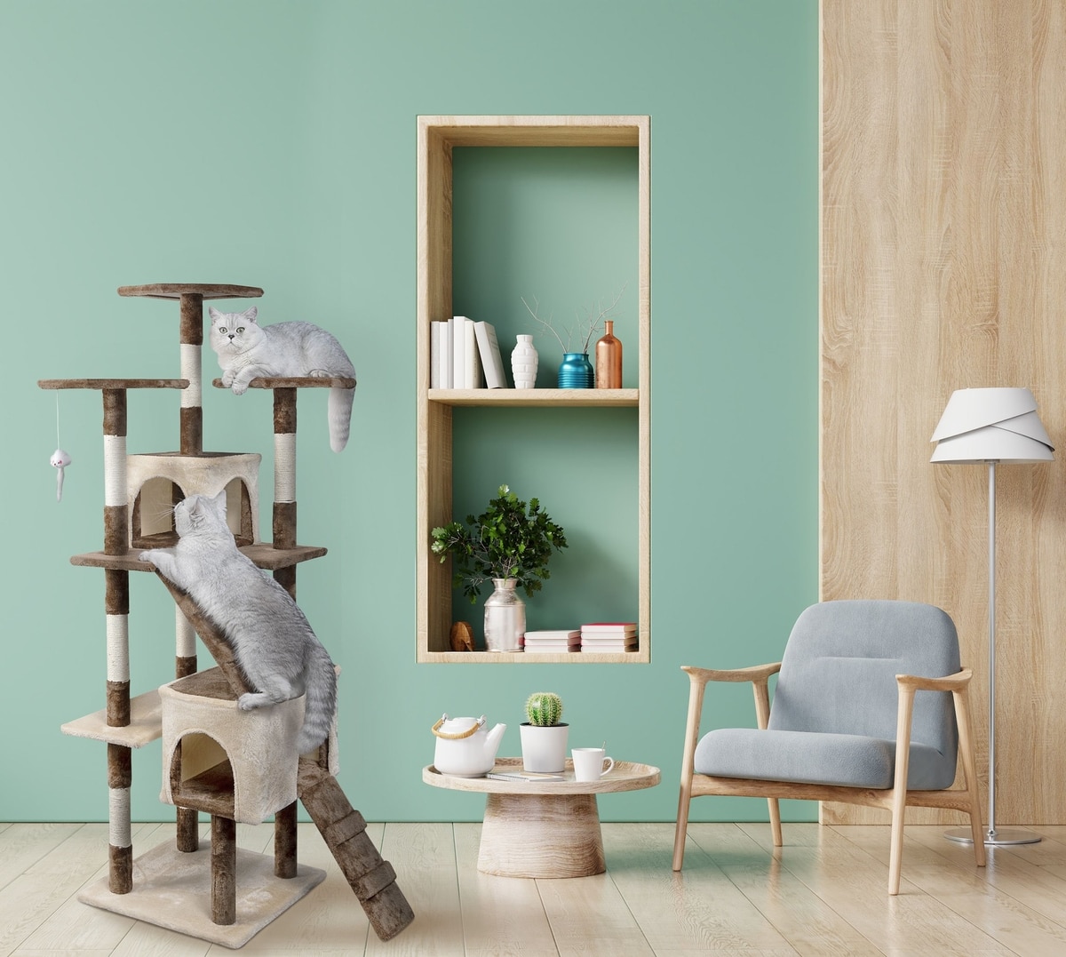 - 3 elevated surfaces satisfy your cat’s love for observing and perching.