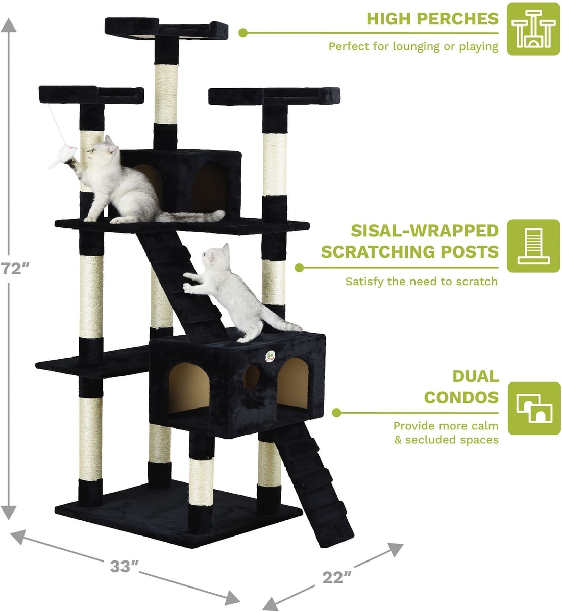 Go Pet Club 72-in Faux Fur Cat Tree & Condo, Black