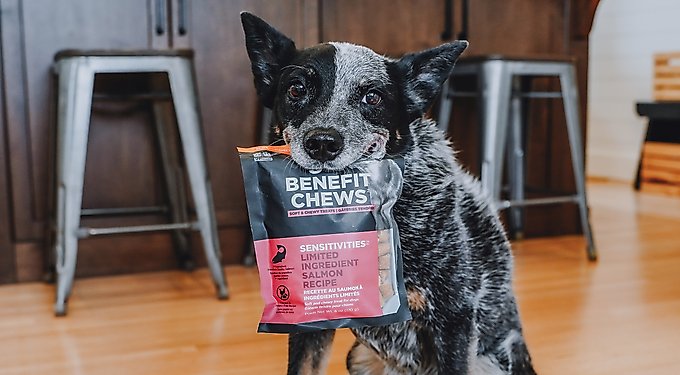 - Go! Solutions Benefit Chews Sensitivities Benefit Limited Ingredient Salmon Recipe Soft & Chewy Dog Treats, 6-oz bag$9.99 Chewy Price$9.49 Autoship PricePromo, New Customers Only: Spend $49+, Get $20 eGift Card +1 deal