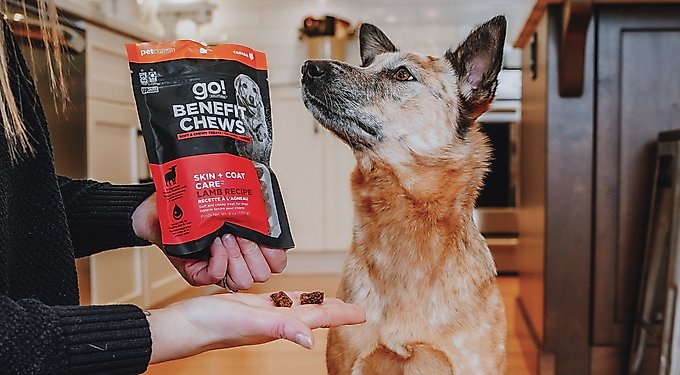 - Go! Solutions Benefit Chews Skin + Coat Care Benefit Lamb Recipe Soft & Chewy Dog Treats, 6-oz bag$9.99 Chewy Price$9.49 Autoship PricePromo, New Customers Only: Spend $49+, Get $20 eGift Card +1 deal