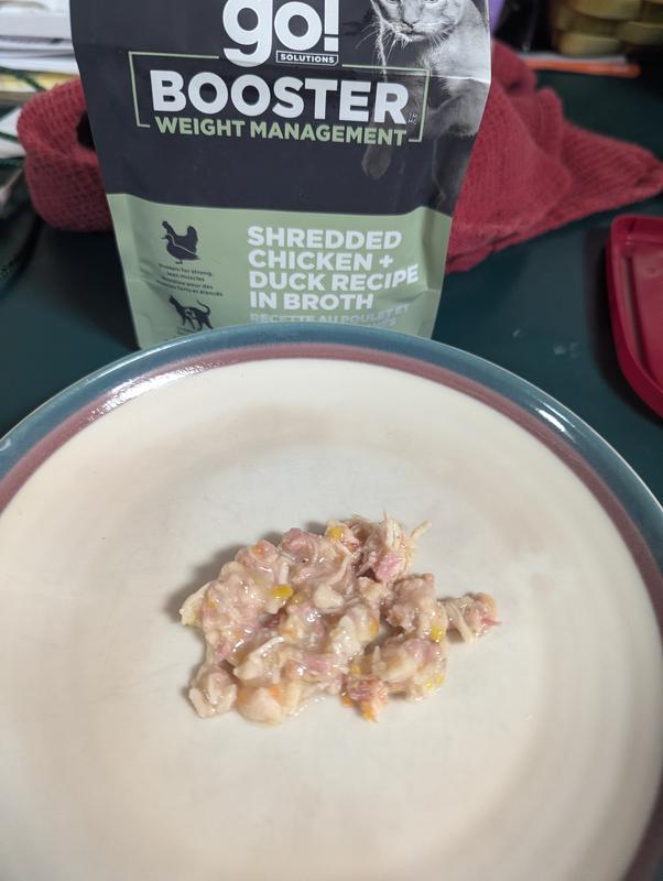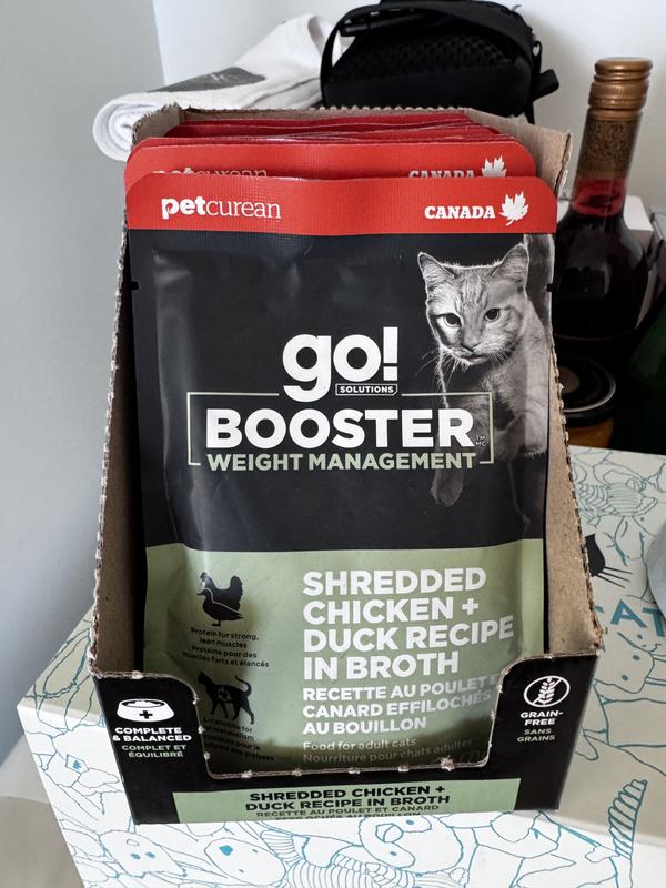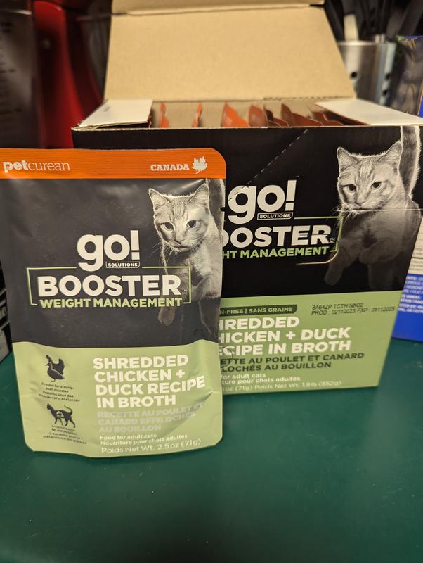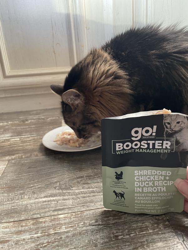Go! Solutions Booster Weight Management Shredded Chicken & Duck in Broth Wet Cat Food, 2.5-oz pouch, 12 count