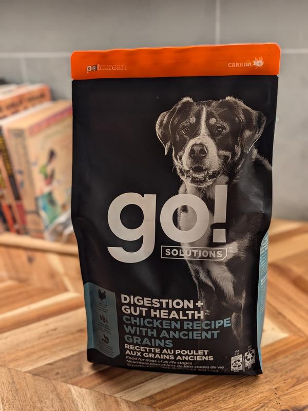 - Go! Solutions Digestion + Gut Health Salmon Recipe with Ancient Grains for Dogs, 22-lb bag$79.99 Chewy Price$75.99 Autoship PricePromo, New Customers Only: Spend $49+, Get $20 eGift Card +1 deal