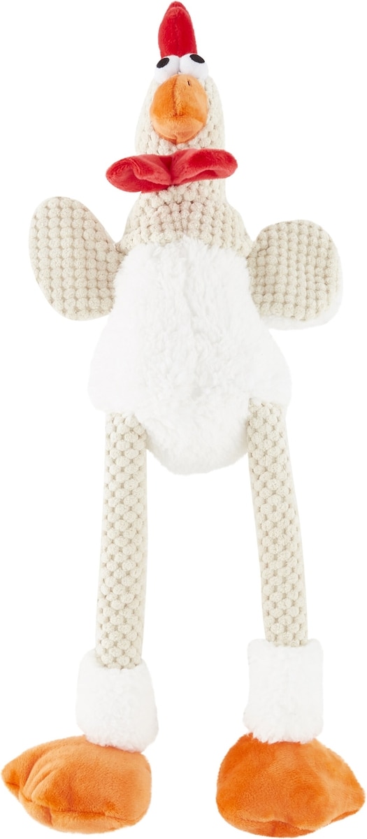 GoDog Checkers Chew Guard Rooster Squeaky Plush Dog Toy, Skinny Large