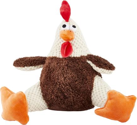 GoDog Checkers Chew Guard Rooster Squeaky Plush Dog Toy, Fat Large