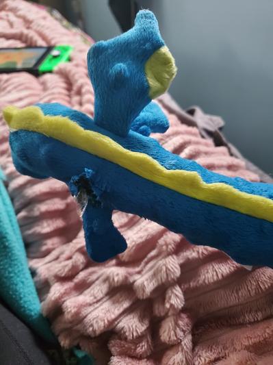 We've owned a couple of GoDog plushes and they usually last ~1 month before they tear (which is good for our lab), but this one in particular lasted about a week