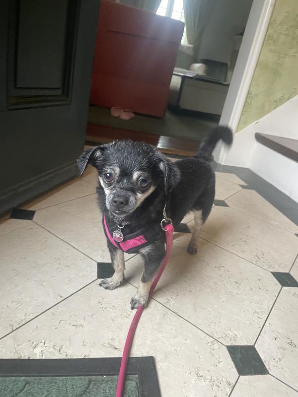 I have tried SO MANY harnesses for my 5 pound chihuahua, and this is by far the best. Chihuahuas notoriously like to tug, and this is the only harness that doesn’t slip up toward her throat or chafe her armpits when she pulls. The size adjusters are so simple and easy that it makes me wonder why brands use any other design. I can adjust it so fast on my way out the door! My dog is at the smallest end of the size range, which makes it possible to make the harness much bigger to accommodate her wearing thick sweaters under it. It’s also super lightweight, so my little one doesn’t seem weighed down whatsoever.
