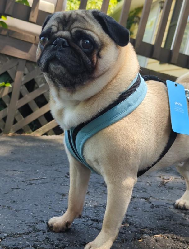 My pug really didn't like the harness that was given to us with her upon adoption, it was a little tight going over her head and only had one buckle (so one leg