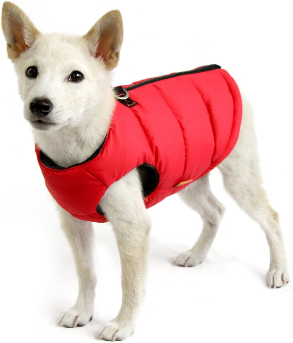 The D-ring of the Gooby Padded Dog Vest is sewn directly onto the fabric and does not wrap around the entire garment as a harness would. The D-ring on the Padded Vest is intended for convenience only and is not designed to function as a full harness.