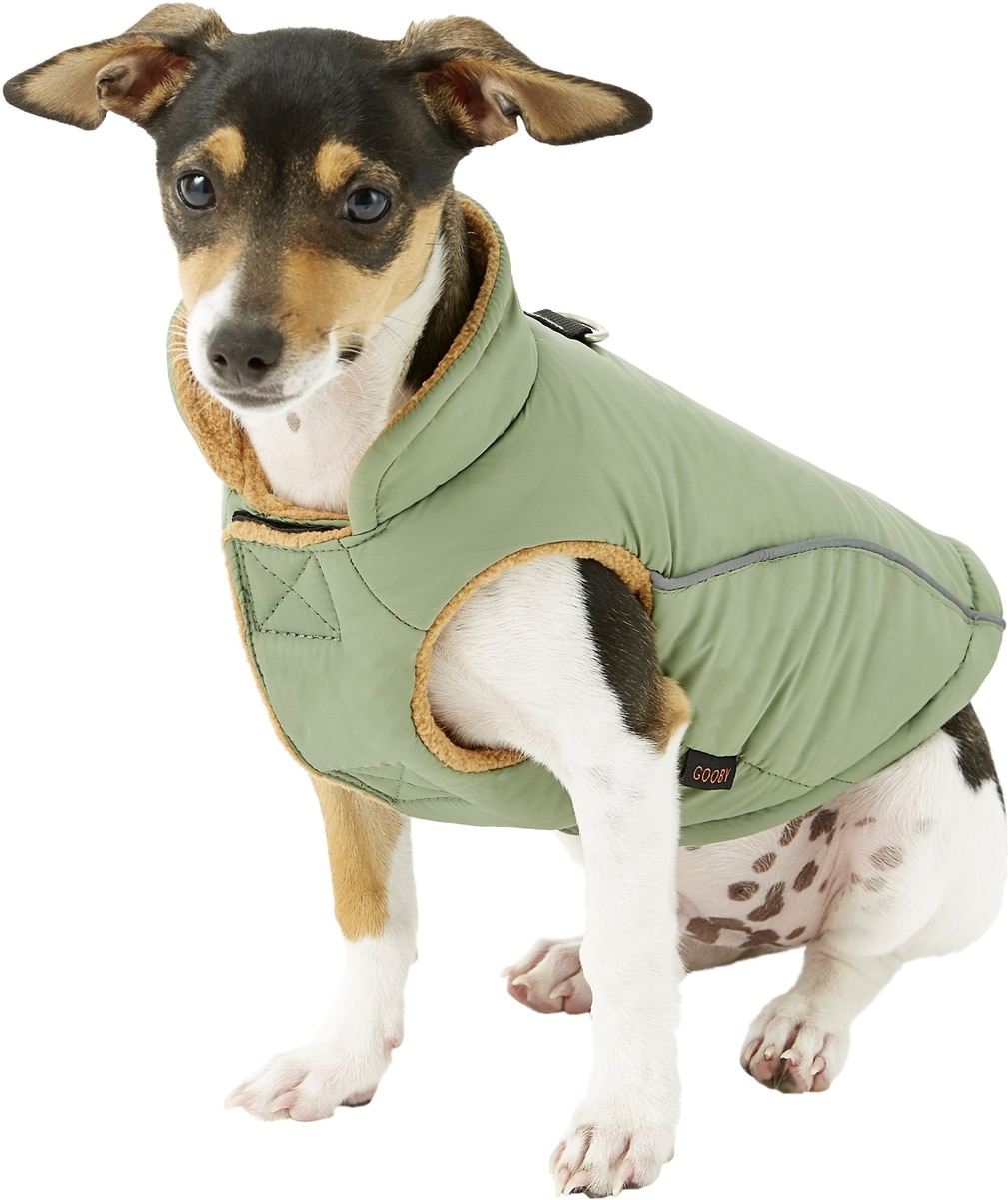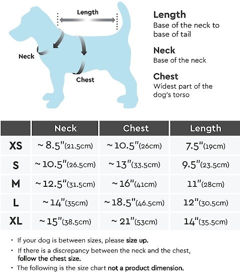 Gooby products are geared towards small dogs. Therefore, a size large doesn't necessarily mean it is for the larger breeds. Their sizing is based on the dog's chest, neck, and length measurements rather than the weight. Please check the size charts for an accurate fit.