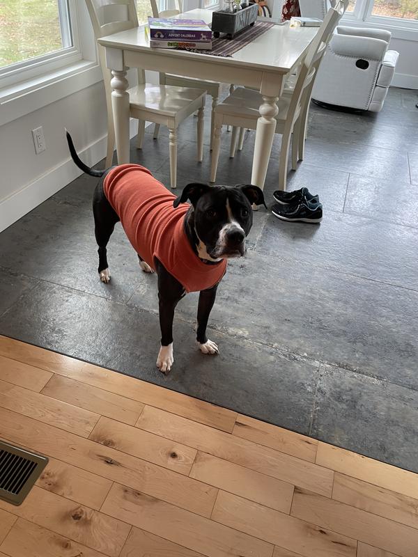 I needed something that would add a little more warmth on cold mornings, that would fit my Boston Terrier's odd shape. This fits the bill perfectly. If there's a nitpick about it, it's that it's long enough to get caught on her nubby tail. That could be a plus if you think your dog's tail gets cold.