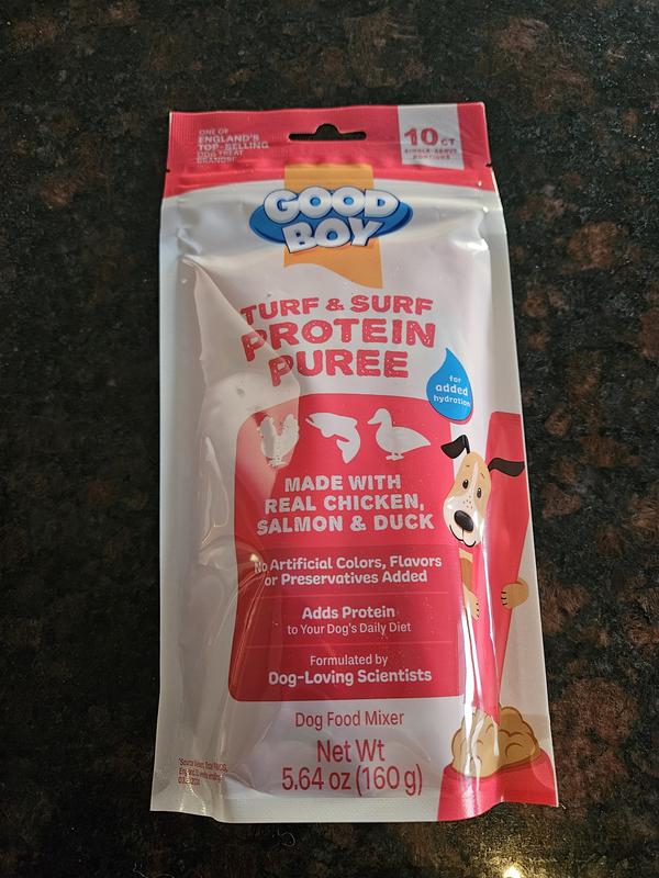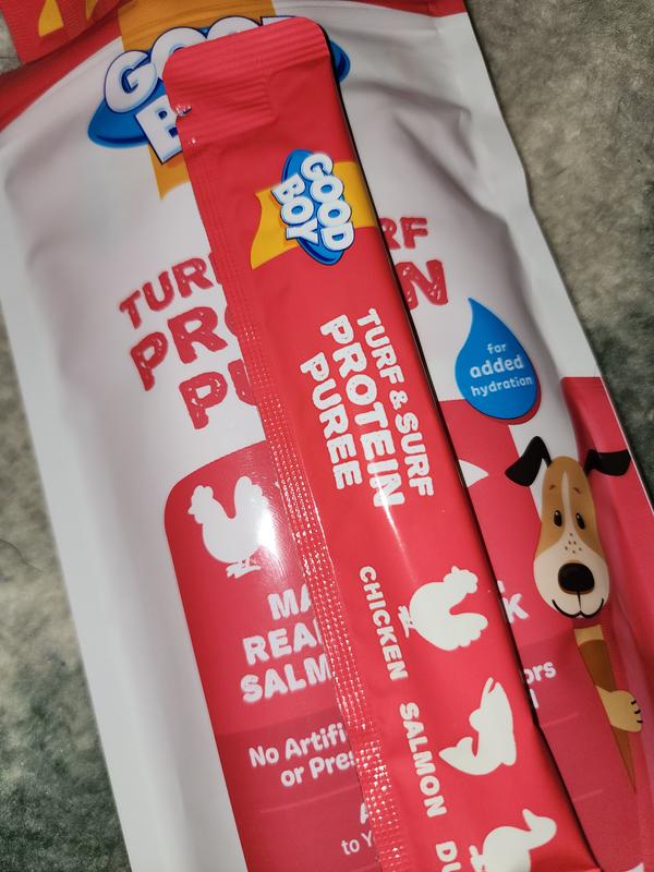 Good Boy Turf & Surf Chicken, Salmon, & Duck Puree Dog Food Topper, 10 count