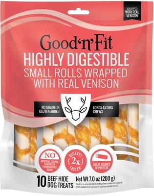 Good 'n' Fun Good 'n' Fit Highly Digestible Rawhide Rolls Small Venison Flavor Dog Chew, 10 count