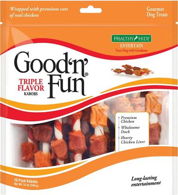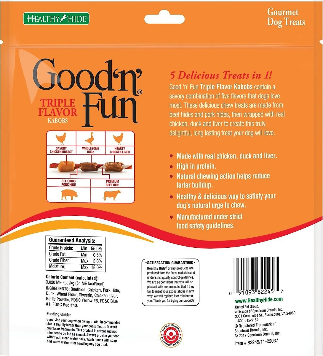 Good 'n' Fun Triple Flavor Kabobs Chicken, Duck & Chicken Liver Dog Chews, 18 count, bundle of 2