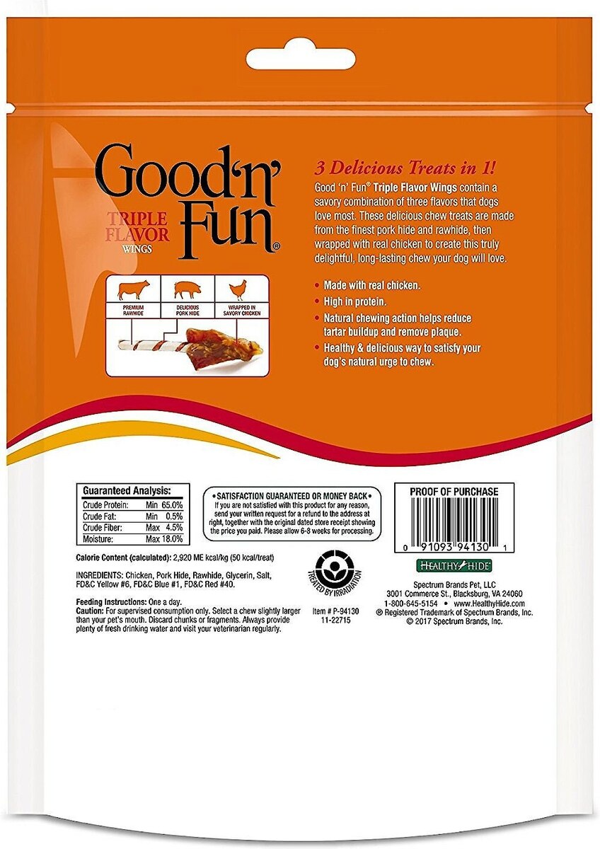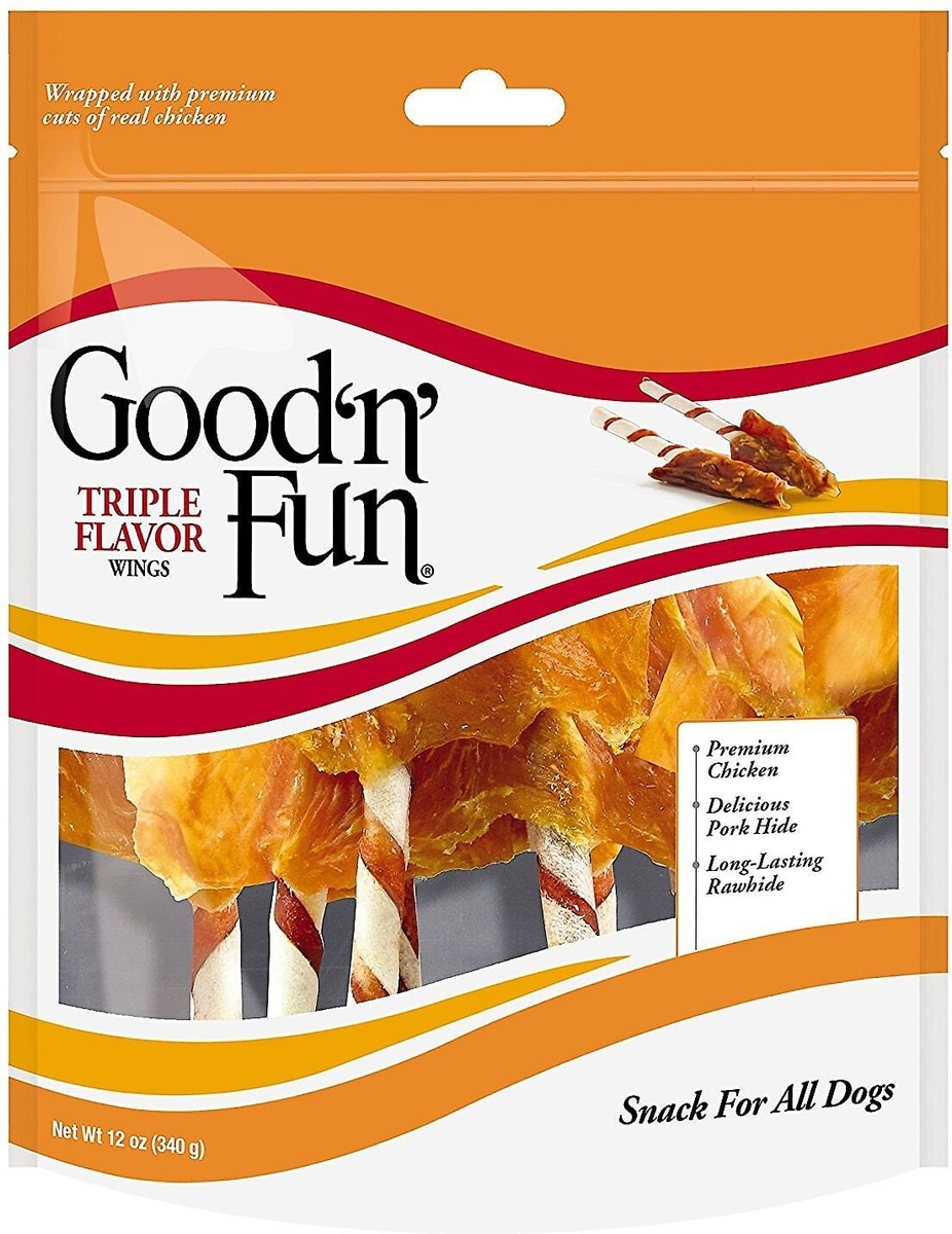 Good 'n' Fun Triple Flavor Wings Chicken, Pork & Beef Hide Dog Chews, 12-oz bag, bundle of 2