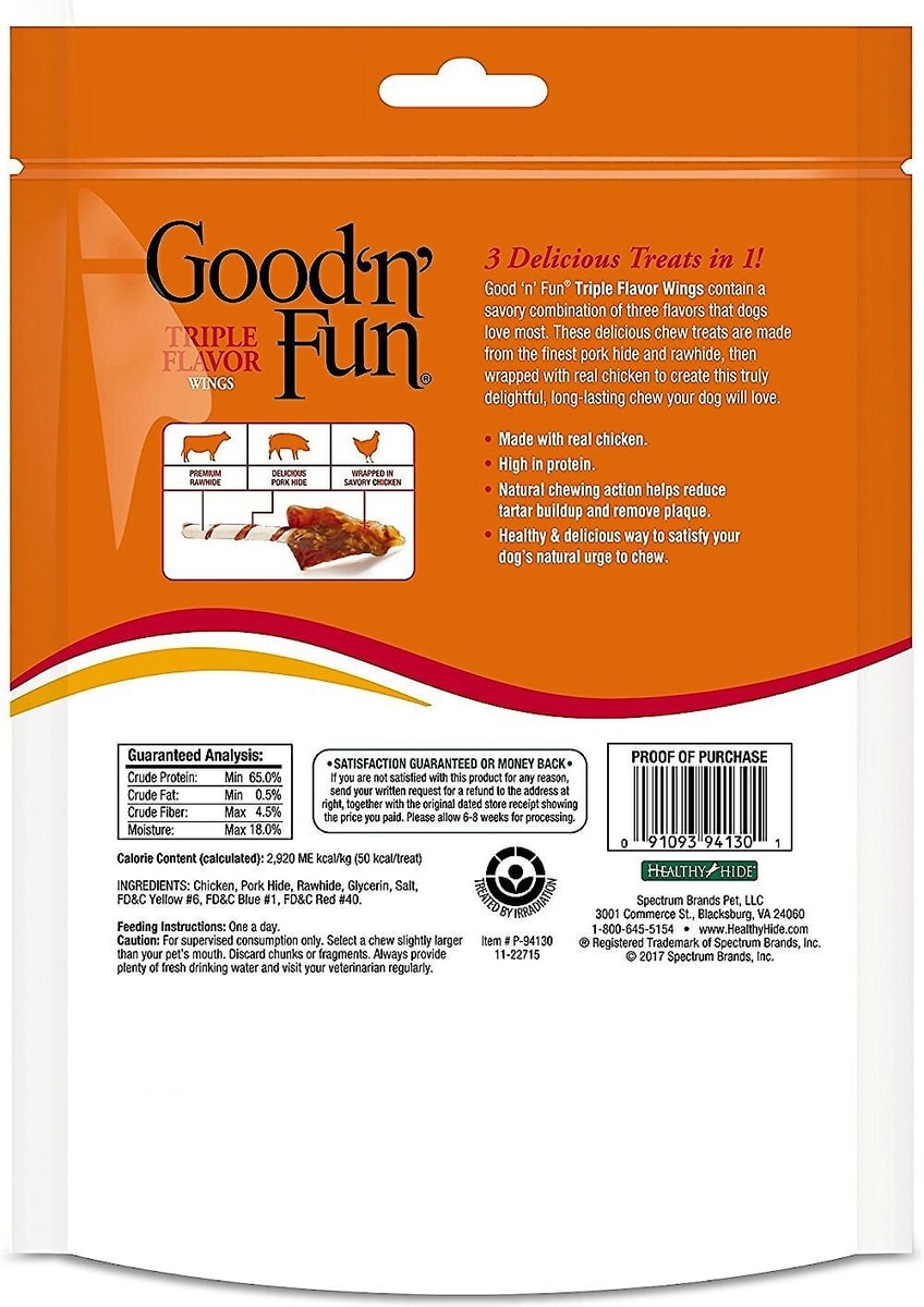 Good 'n' Fun Triple Flavor Wings Chicken, Pork & Beef Hide Dog Chews, 12-oz bag, bundle of 3