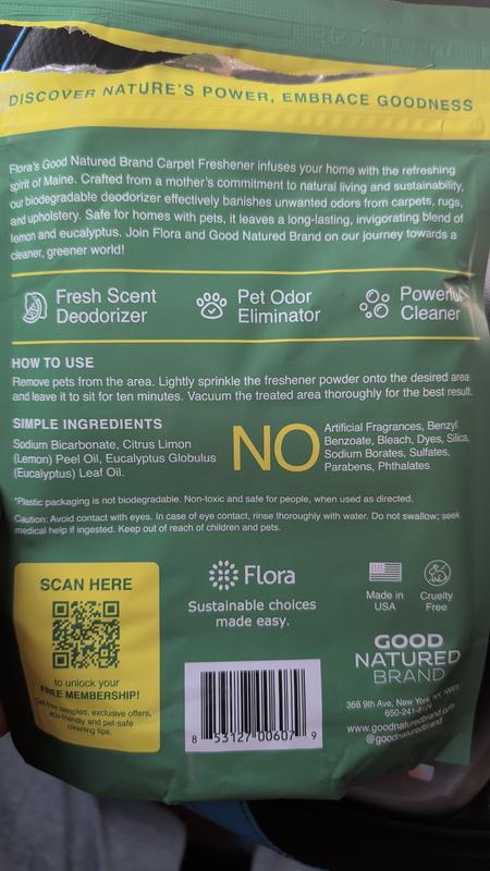 I don’t currently have carpet, so I wasn’t able to use this product for its intended purpose. I also have a dog and two cats, and I tend to be cautious with scented powders in areas my pets might come into contact with. Instead, I’ve been using a very small sprinkle in our outdoor city trash bin to help with odor control. In that setting, it does help reduce unpleasant smells when used sparingly. The lemon scent is fresh but noticeable, so a little goes a long way. Overall, the powder seems effective for odor management, but I personally chose a limited, non-pet-contact use. This may work well for others on carpets, especially if scent strength and pet sensitivities aren’t a concern.