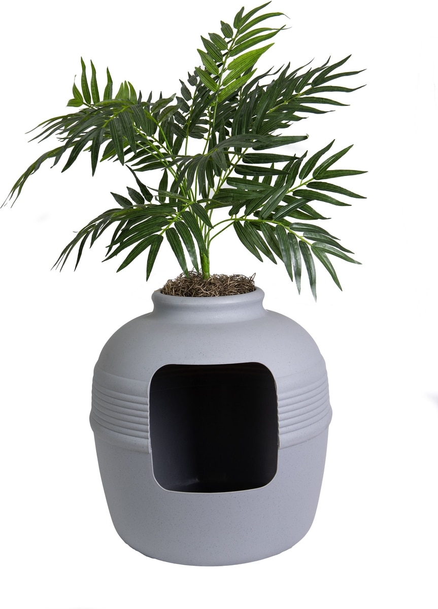 - Uniquely designed litter box is made in the USA and looks like a planter complete with a faux plant.