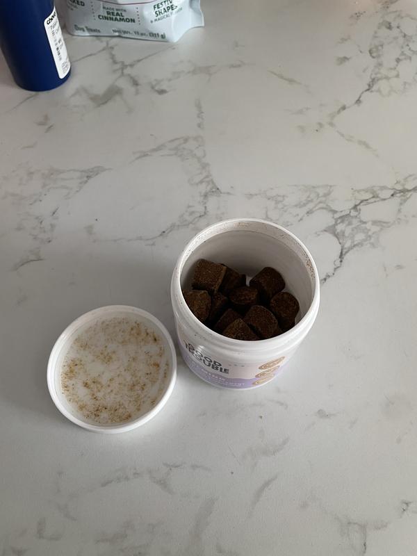 This is really great for a natural calming aide. The ingredients are minimal which I like. For my dogs size they do need 3 chews so one container won’t last three