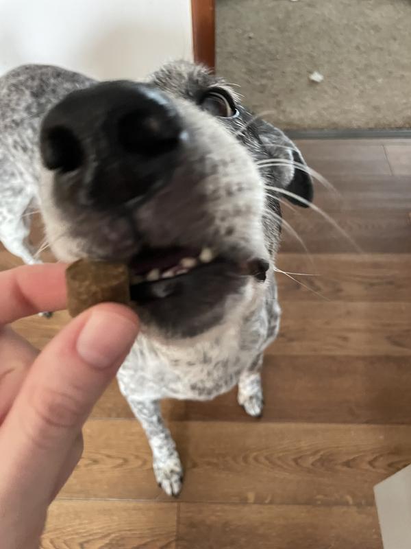 My dog really likes them! She eats them like any other treat. They are a good size too. The only downside is that for bigger dogs you have to give them more than one daily. Giving them 2-3 a day will make them run out really fast. I haven’t reordered them so I can’t give a great review for the changes in my dog long term. Maybe she is calmer because she’s getting more treats!