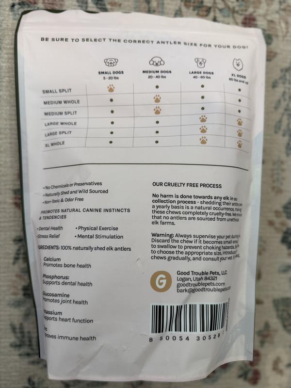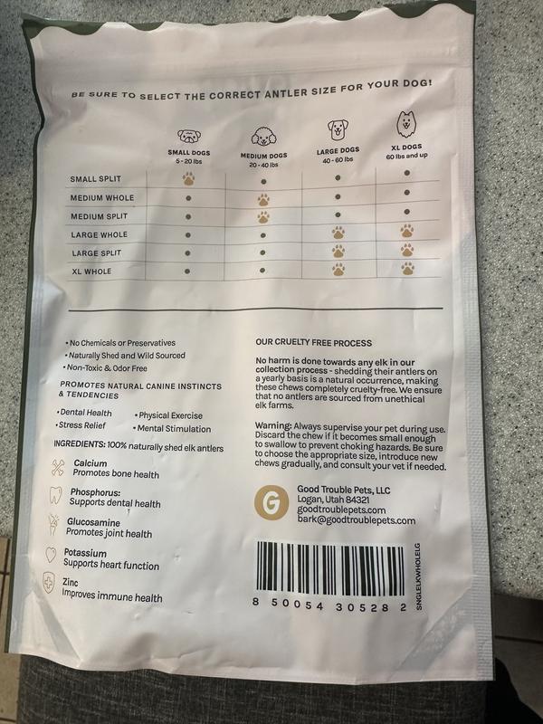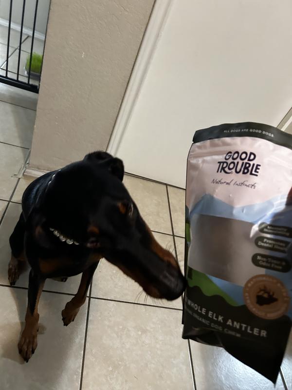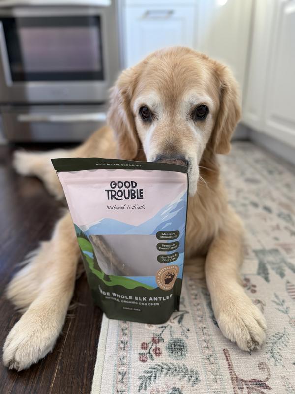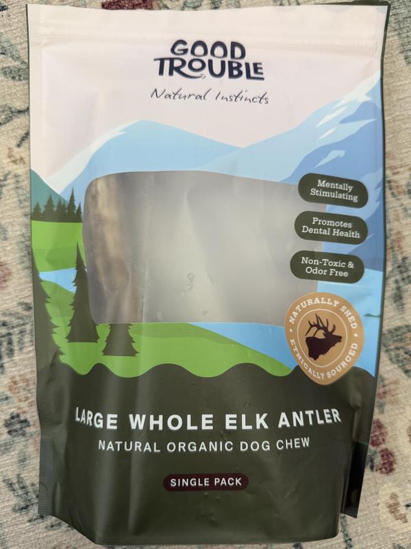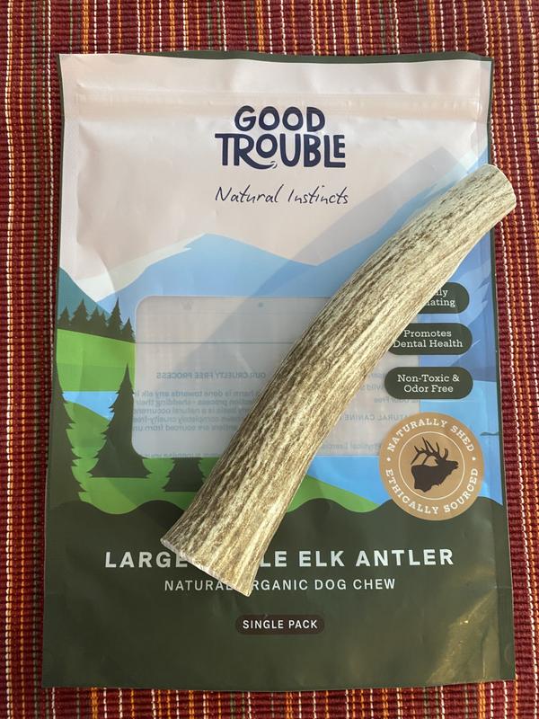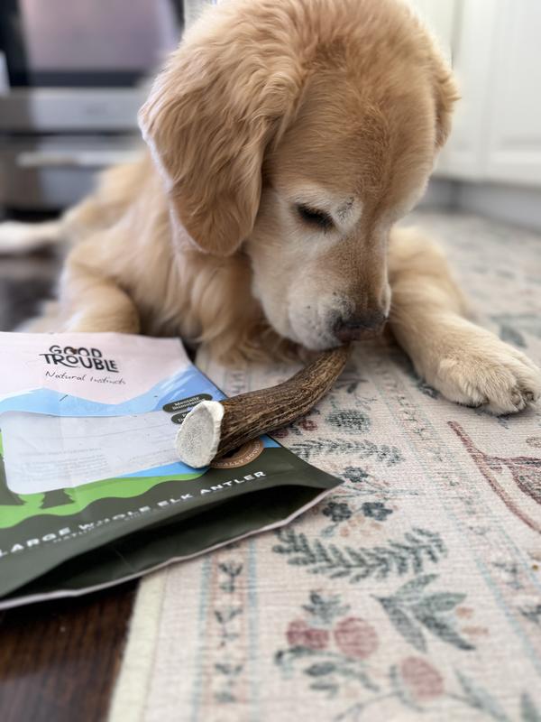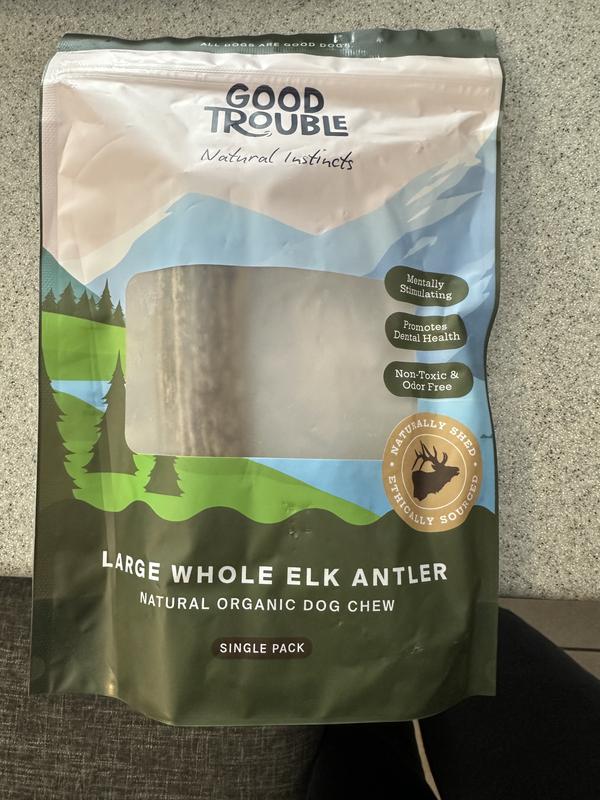 The Good Trouble Elk Antler Whole Dog Treat (Large) has officially become my dog’s new favorite chew! I was blown away by how high-quality and durable the antler is. My golden retriever can usually destroy most chews within minutes, but this one is going to last a long time! I love that it’s 100% natural, odor-free, and doesn’t leave any mess on the floors. It keeps him busy, satisfied, and mentally stimulated—perfect for those days when he needs something long-lasting to work on. The size was exactly as described, and it feels super sturdy and safe. If you’re looking for a chew that combines quality, longevity, and natural ingredients, this elk antler is absolutely worth it. My pup gives it two big paws up! 🐾💛