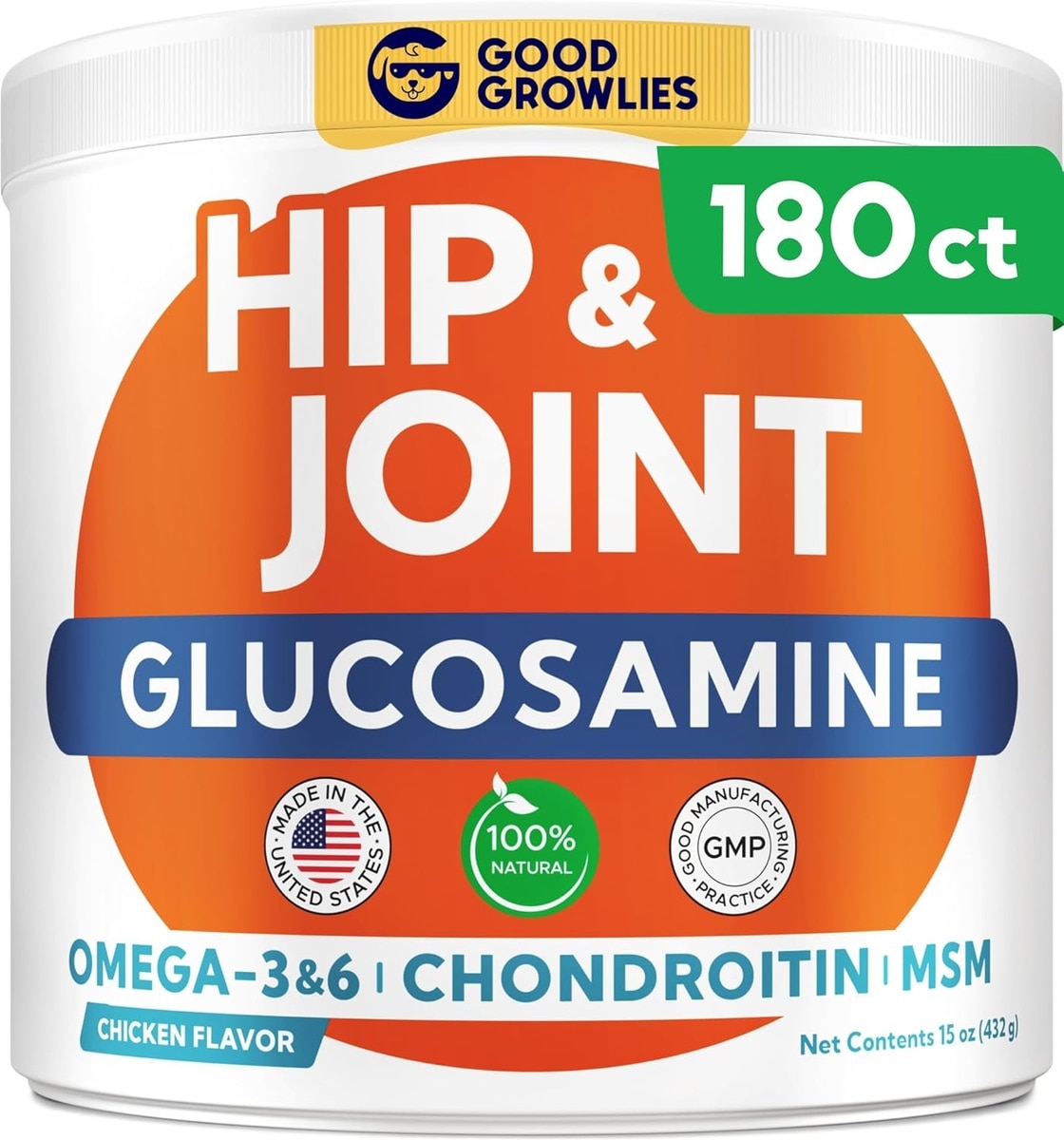 GoodGrowlies Glucosamine Hip & Joint Chicken Flavored Soft Chew Supplement for Dogs, 180 count
