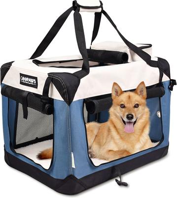 GOOPAWS 3-Door Collapsible Soft-Sided Dog & Cat Crate, Lake Blue, Large