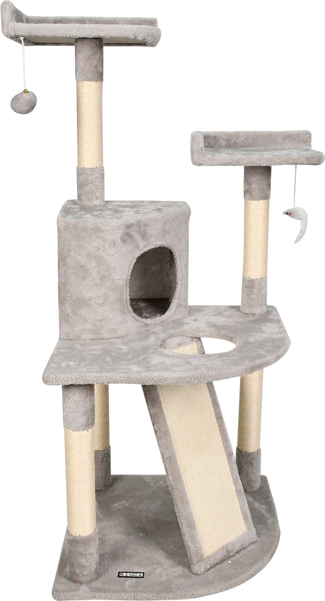 GOOPAWS 3-Tier 50-in Faux Fur Cat Tree & Condo, Light Grey