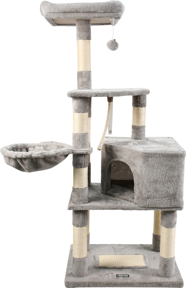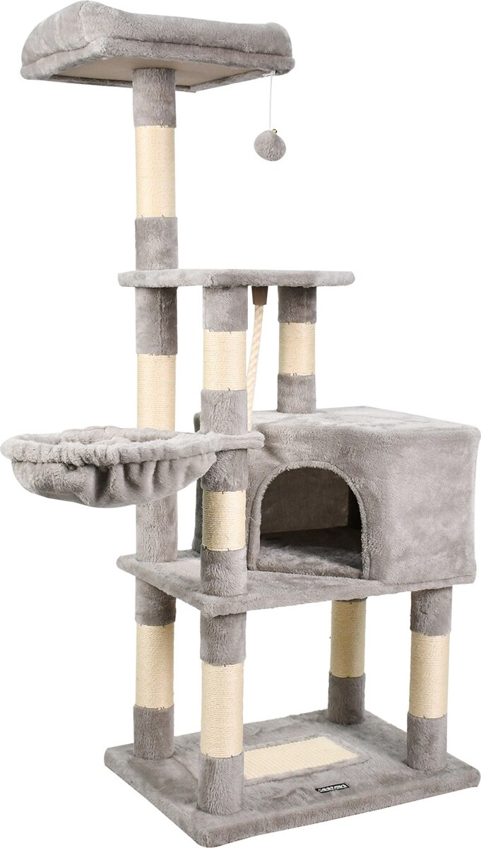 GOOPAWS 53-in Faux Fur Top Perch Cat Tree & Condo, Light Grey