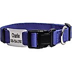 - This adjustable collar features a slide-on stainless-steel ID tag.