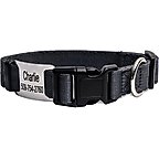 • This dog collar comes with a stainless steel, slide-on ID tag that can be personalized with up to four lines of custom engraving.